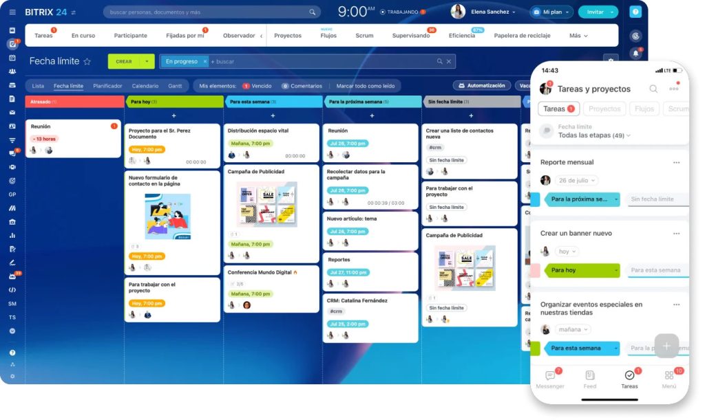 Gestión eficiente de tareas y proyectos para equipos de cualquier tamaño. Optimiza la administración de tareas con herramientas colaborativas que incluyen seguimiento del tiempo, recordatorios, informes, plantillas y dependencias cde tareas y más. Lleva la planificación de proyectos al siguiente nivel con administración de recursos, seguimiento del progreso, calendarios integrados, tableros Kanban y diagramas de Gantt interactivos.